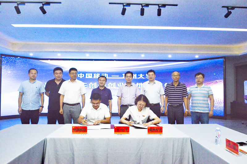 7月17日下午,中国移动—常州大学5G大学生创新创业基地签约仪式在我校技术转移中心举行。中国移动江苏公司常州分公司副总经理郑德君、武进区分公司总经理应书清、常州分公司市场部副经理闵鹏鹏,校党委副书记、副校长戴国洪出席签约仪式,校党委学工部、后勤管理处、校团委相关负责人参加签约仪式。
