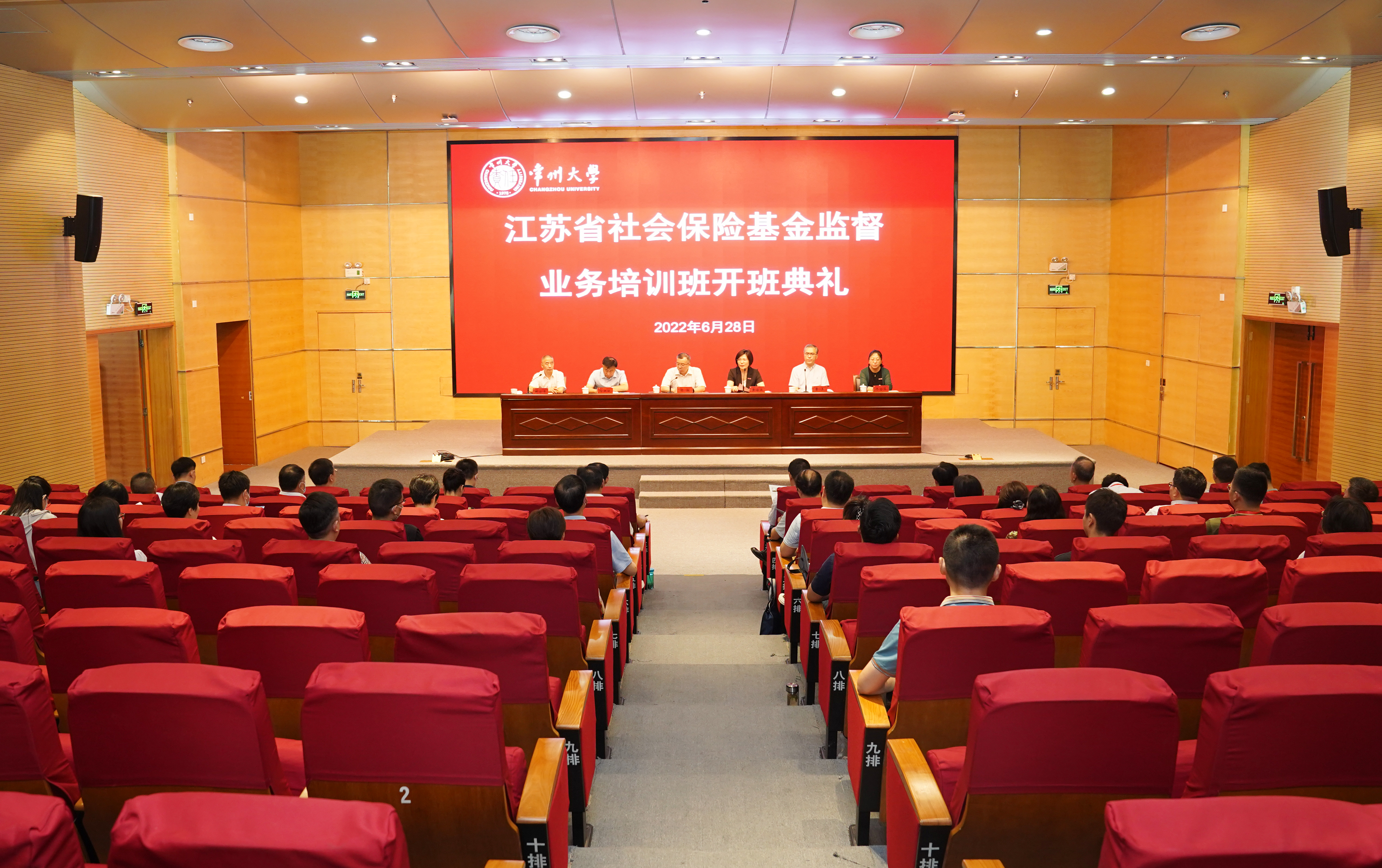 6月28日上午,江苏省社会保险基金监督业务培训班在我校科教城校区文彰楼报告厅开班。江苏省人社厅副厅长顾潮,江苏省人社厅二级巡视员经洪斌,江苏省人社厅社会保险基金监管局局长曹杰,常州大学党委常委、副校长黄海燕,商学院、培训中心负责人出席开班仪式。常州大学培训中心主任荆谷平主持开班仪式。