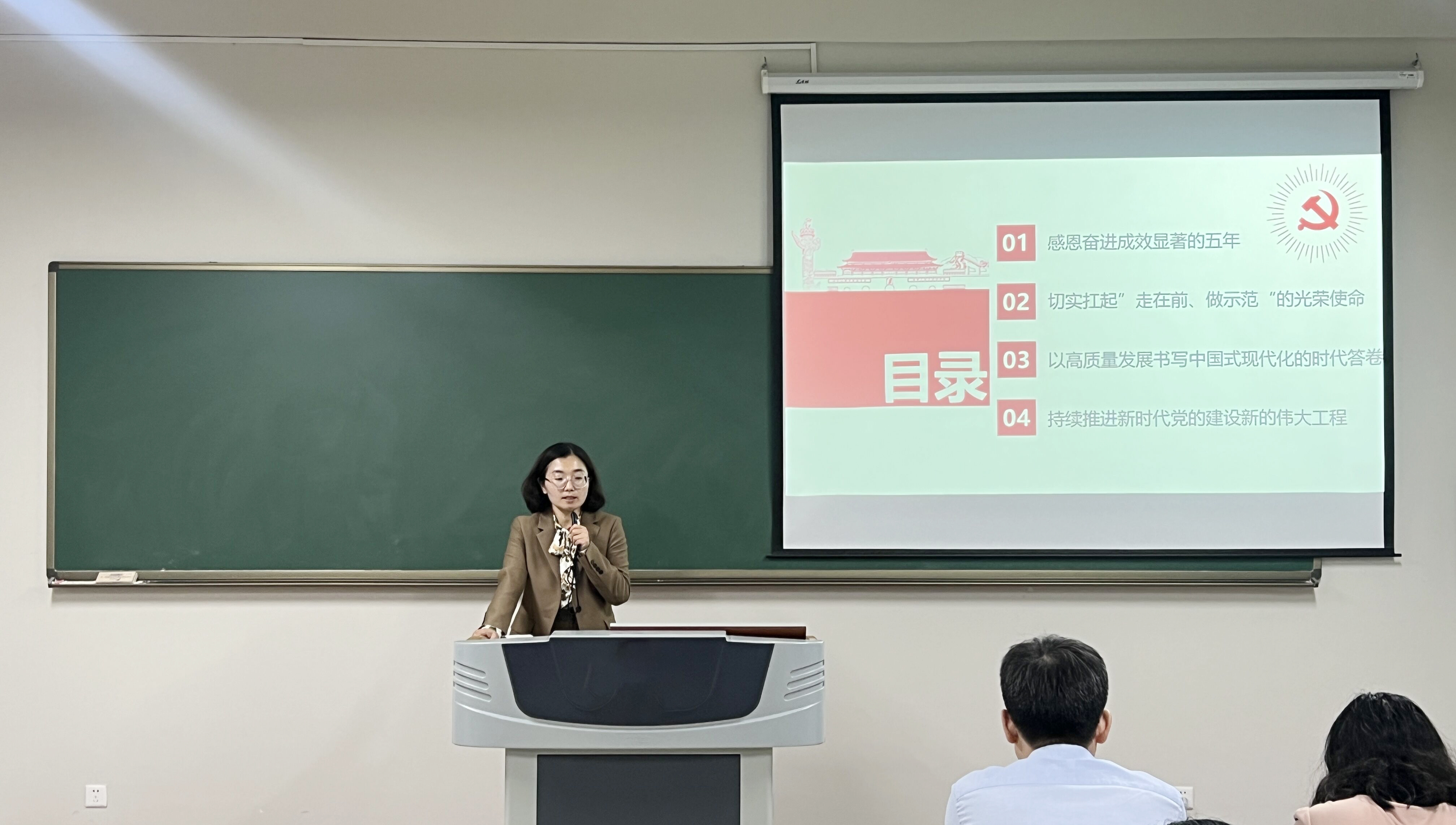 10月25日下午,史良法学院党委召开中国共产党常州大学第三次党员代表大会精神专题学习会。党委书记陈婷领学了党委书记徐守坤所作的《牢记嘱托走在前 感恩奋进做示范 奋力谱写特色鲜明的高水平地方领军型大学新篇章》报告。她指出,报告全面总结了常州大学第二次党代会以来取得的主要成就和经验,深入分析了学校发展面临的新形势新任务,明确提出了要把学校建设成为“国内有地位、国际有影响”的特色鲜明的高水平地方领军型大学,成为服务江苏“走在前、做示范”的标杆大学的奋斗目标,确立了围绕坚持“党建统领”、聚焦“三大制约”、实施“四大策略”、开展“九大行动”的“1349”发展战略。她号召全体教师增强贯彻落实校第三次党代会精神的自觉性和坚定性,认真学习、深刻领悟,脚踏实地,合力共进,切实把思想和行动统一到校第三次党代会作出的决策部署上来,以实际行动展现学习成效。(通讯员/王亚威 程成 唐亚岚 审核/薛荣 乔元明 陈婷 编辑/孙悦)