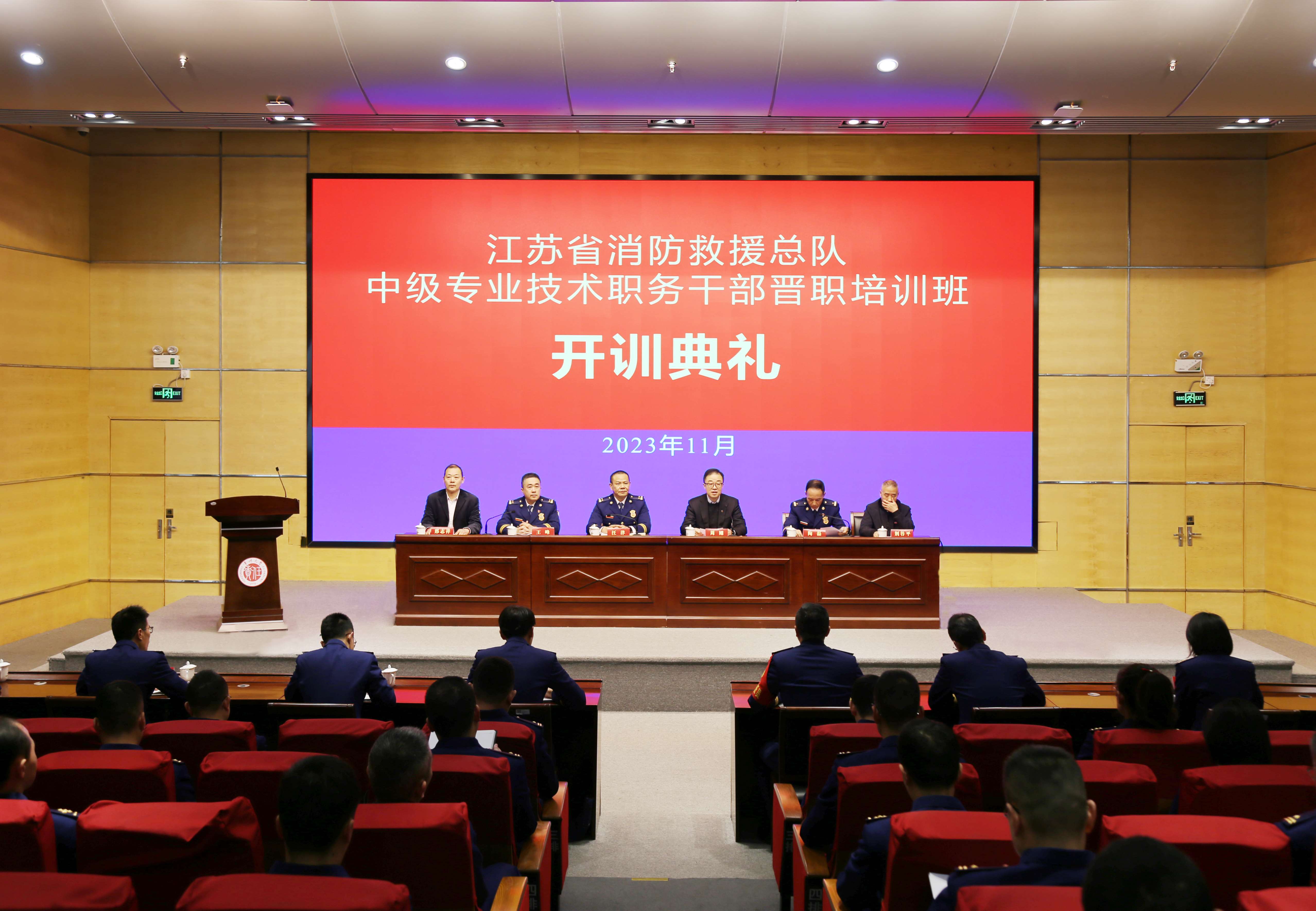 11月13日,江苏省消防救援队伍中级专业技术职务干部晋职培训开训典礼在科教城校区文彰楼报告厅举行。党委常委、副校长周刚出席开班典礼并致辞,江苏省消防救援总队政治部副主任、人事处长汪洋作动员讲话,常州消防救援支队政治委员王峰,常州大学安全科学与工程学院、继续教育学院相关负责人,以及培训大队组训干部和52名参训学员参加典礼,常州消防救援支队政治部主任陶磊主持典礼。