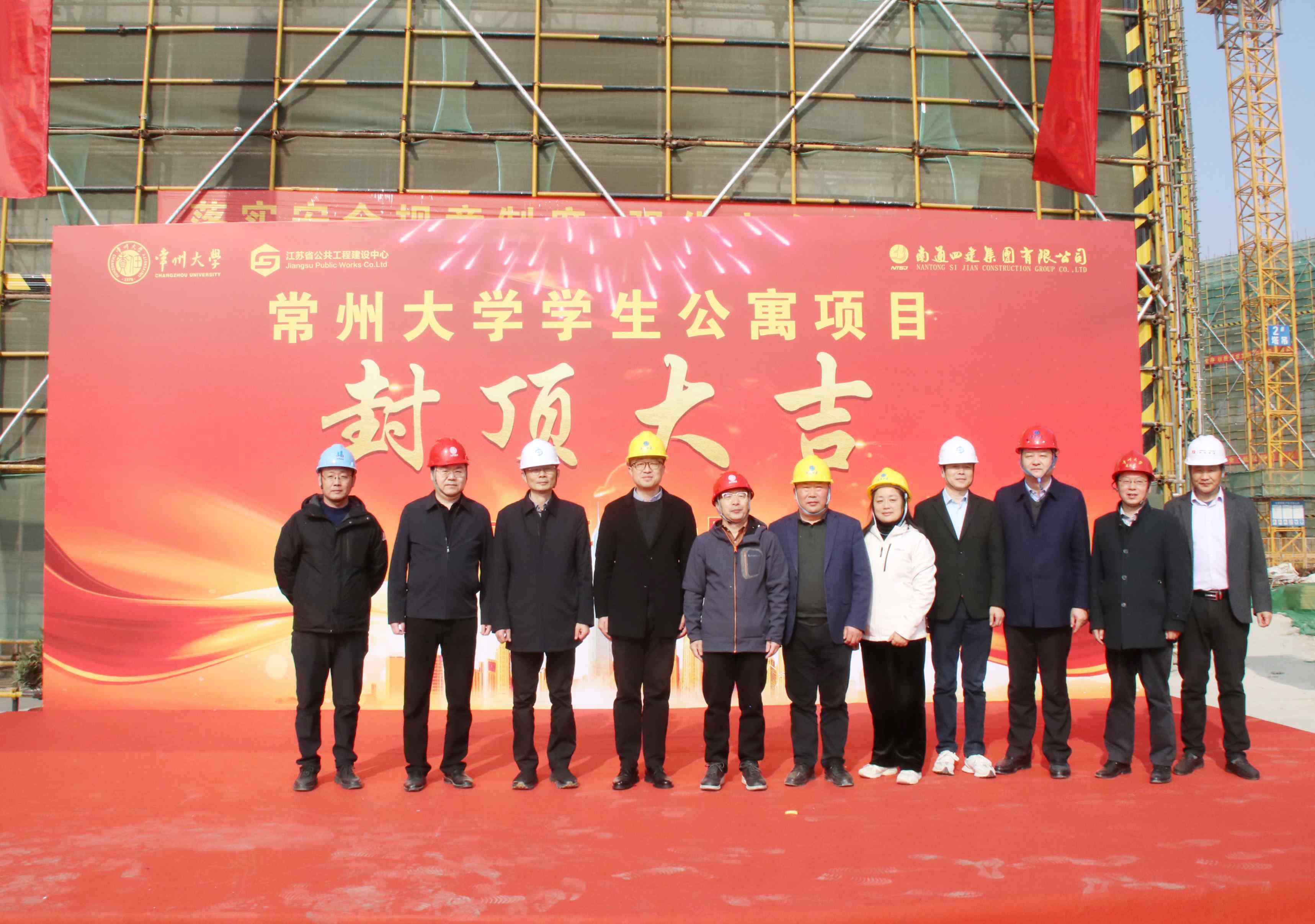 11月28日上午,常州大学学生公寓项目主体封顶仪式在西太湖校区项目施工现场举行。江苏省住房和城乡建设厅政府投资工程集中建设管理处处长曹良春、副处长杜青周,江苏省公共工程建设中心副总经理娄永峰,常州大学党委常委、副校长周刚,相关政府职能部门和各参建单位代表出席仪式。