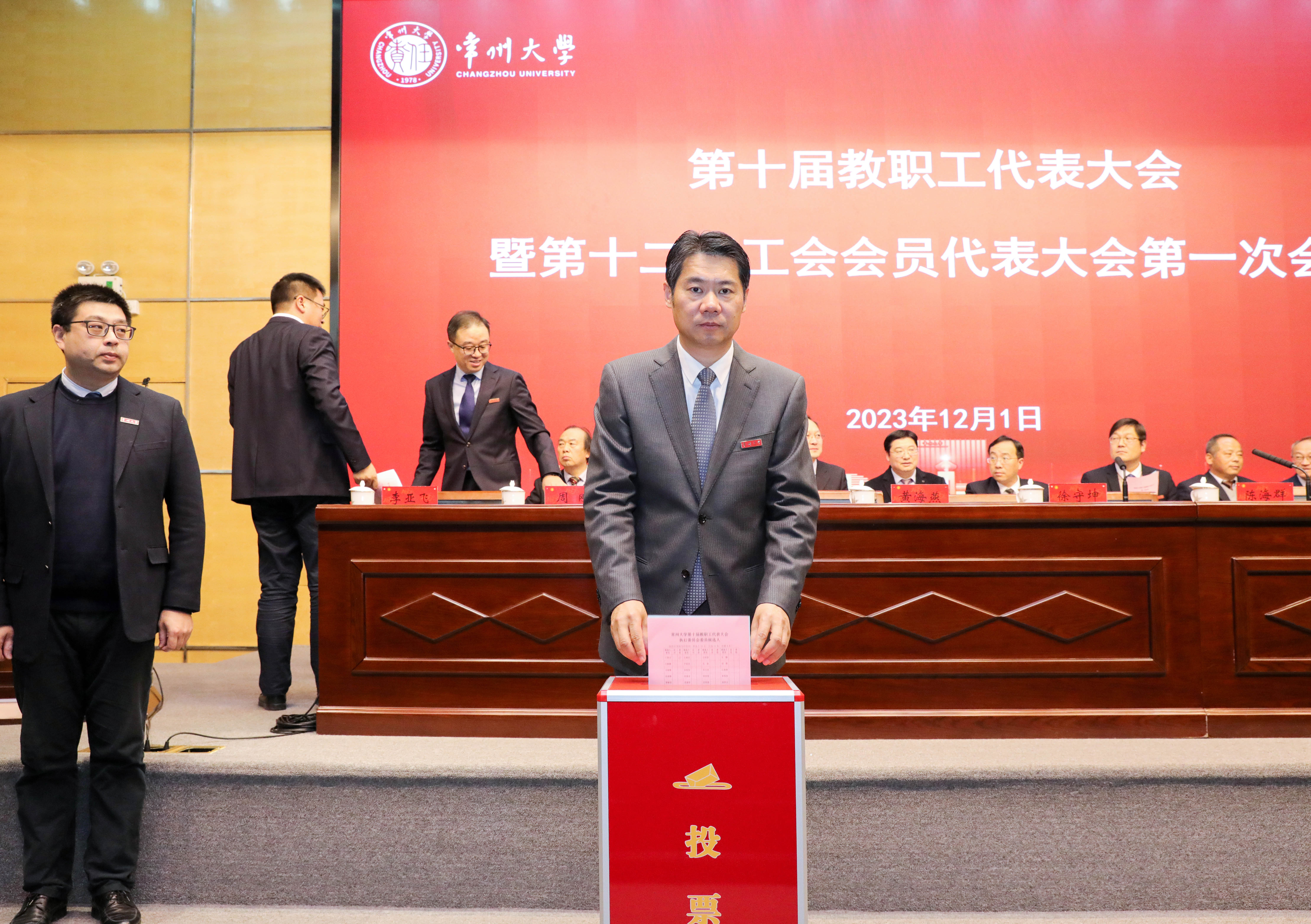 12月1日下午,常州大学第十届教职工代表大会暨第十二届工会会员代表大会胜利闭幕。党委书记徐守坤致闭幕辞。党委副书记、校长陈海群主持闭幕会。校领导出席会议,213名正式代表参加会议。
