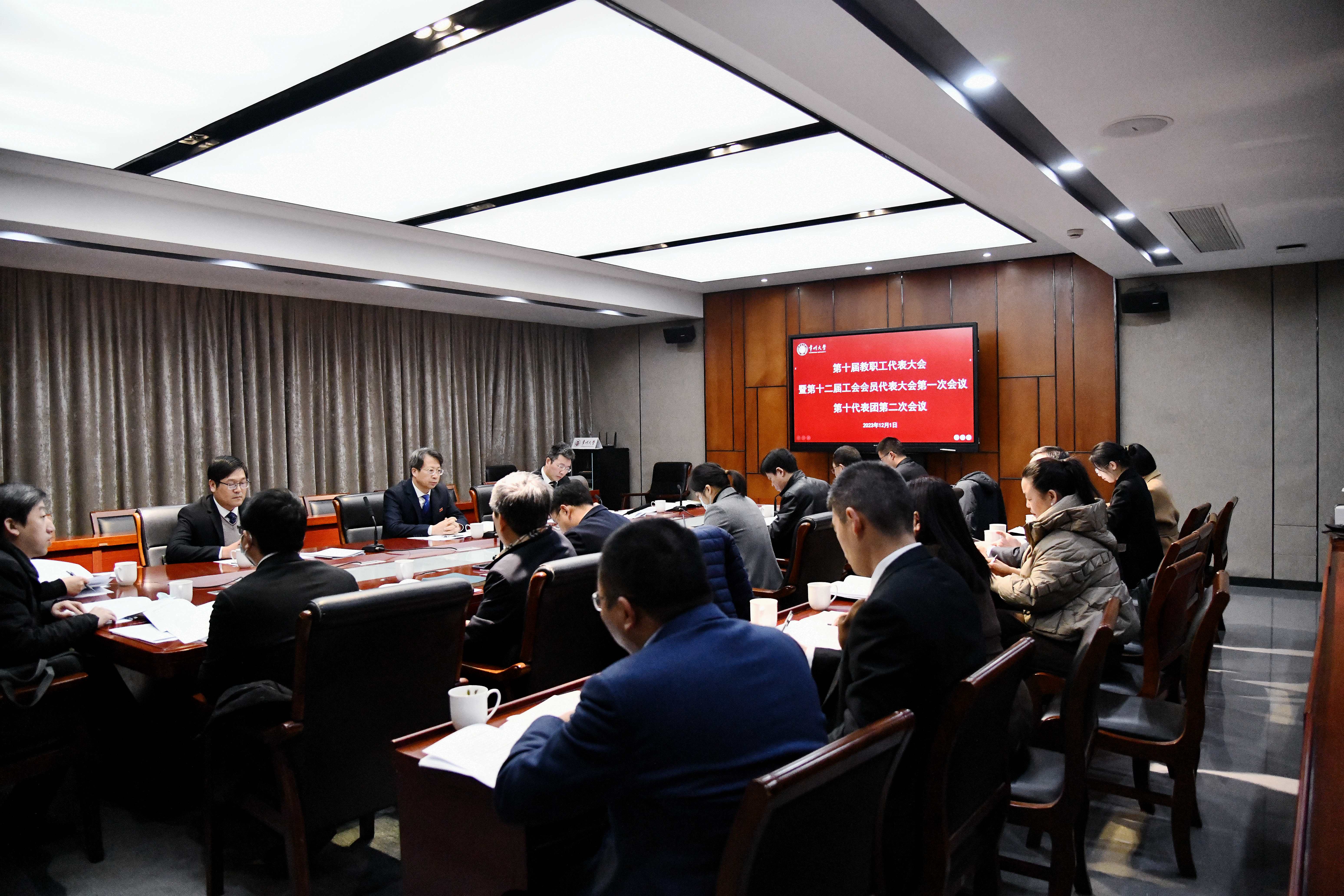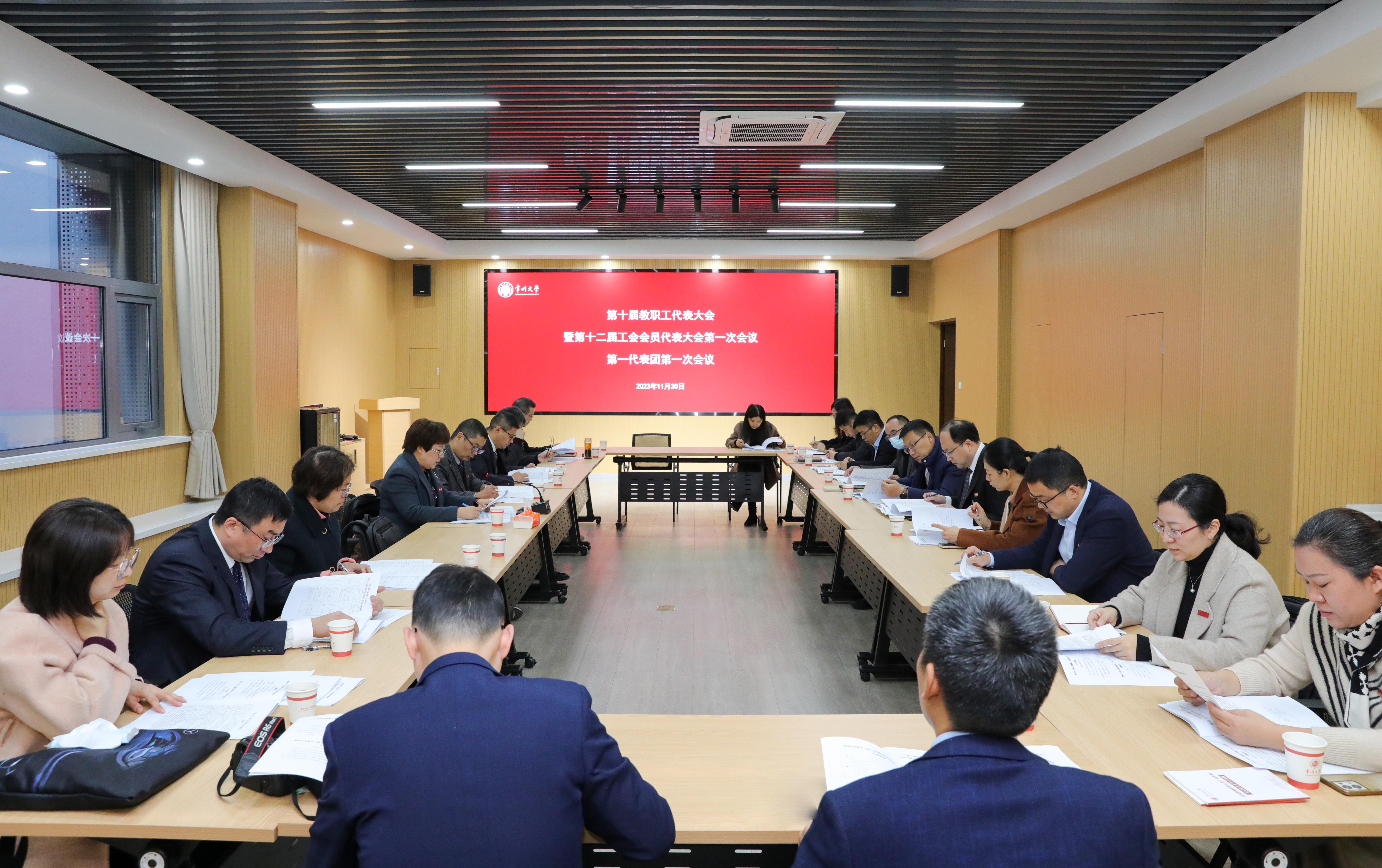 本次大会为期两天。第一次全体会议上,与会代表听取审议了行政工作报告、工会工作报告、学校财务预决算报告、提案工作报告、工会经费审查报告。11个代表团分别召开代表团会议,认真讨论了学校行政工作报告、工会工作报告及相关报告,认真讨论了“两代会”各专门委员会设置情况、组成原则、各类候选人建议名单及产生办法(草案),讨论了大会选举办法(草案)、大会决议(草案),推选了监票人。
