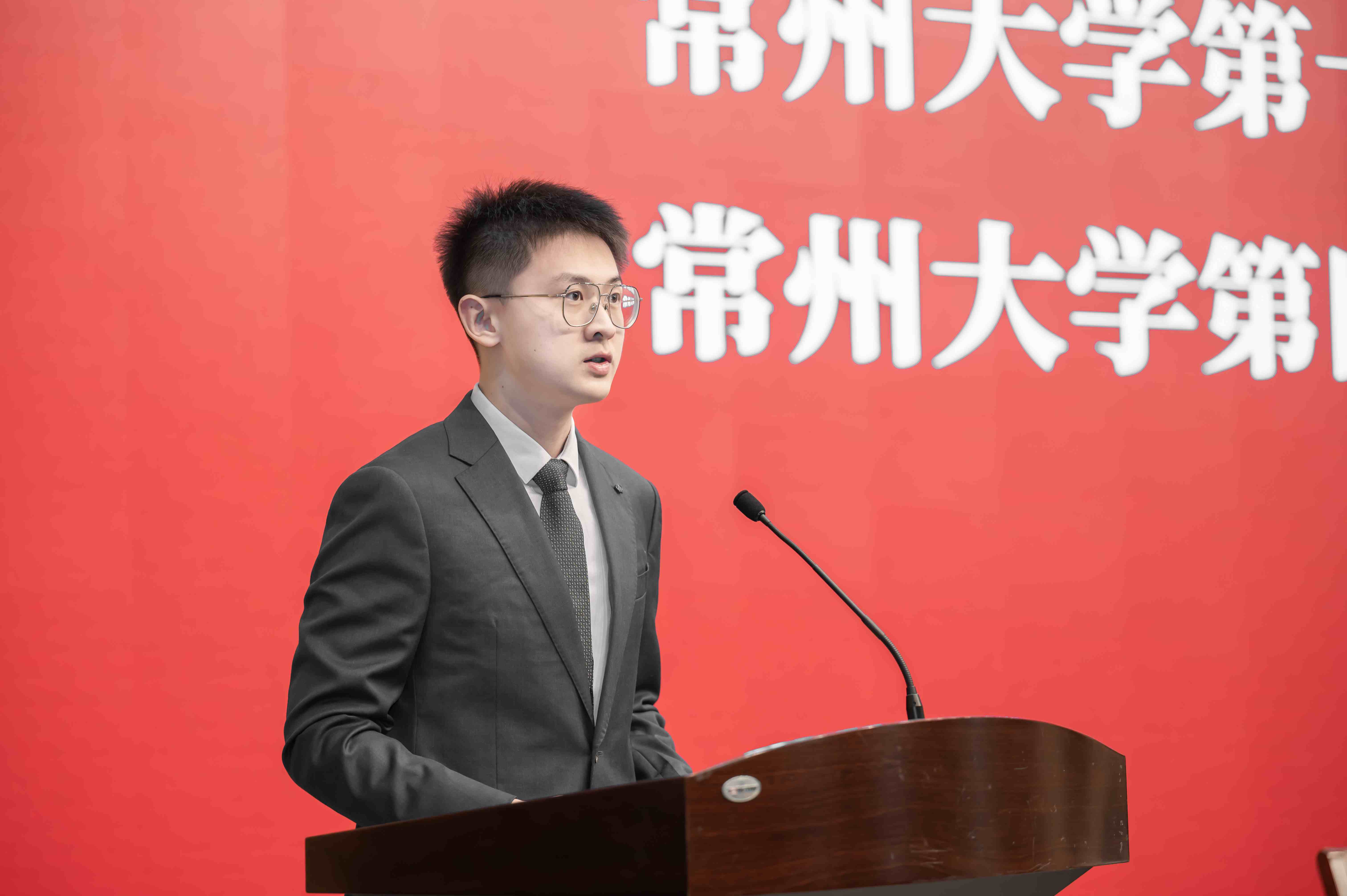 施展代表兄弟高校致辞。他表示,长久以来,常州大学学生会和河海大学学生会携手并进、精诚团结、共同发展,在江苏高校学生会组织大家庭中建立了深厚而持久的友谊。今后,河海大学学生会将继续与常州大学学生会加强交流合作,更好地为广大同学服务,更好地推进学校发展,共同奏响江苏高校学生会建功高质量发展的青春乐章。