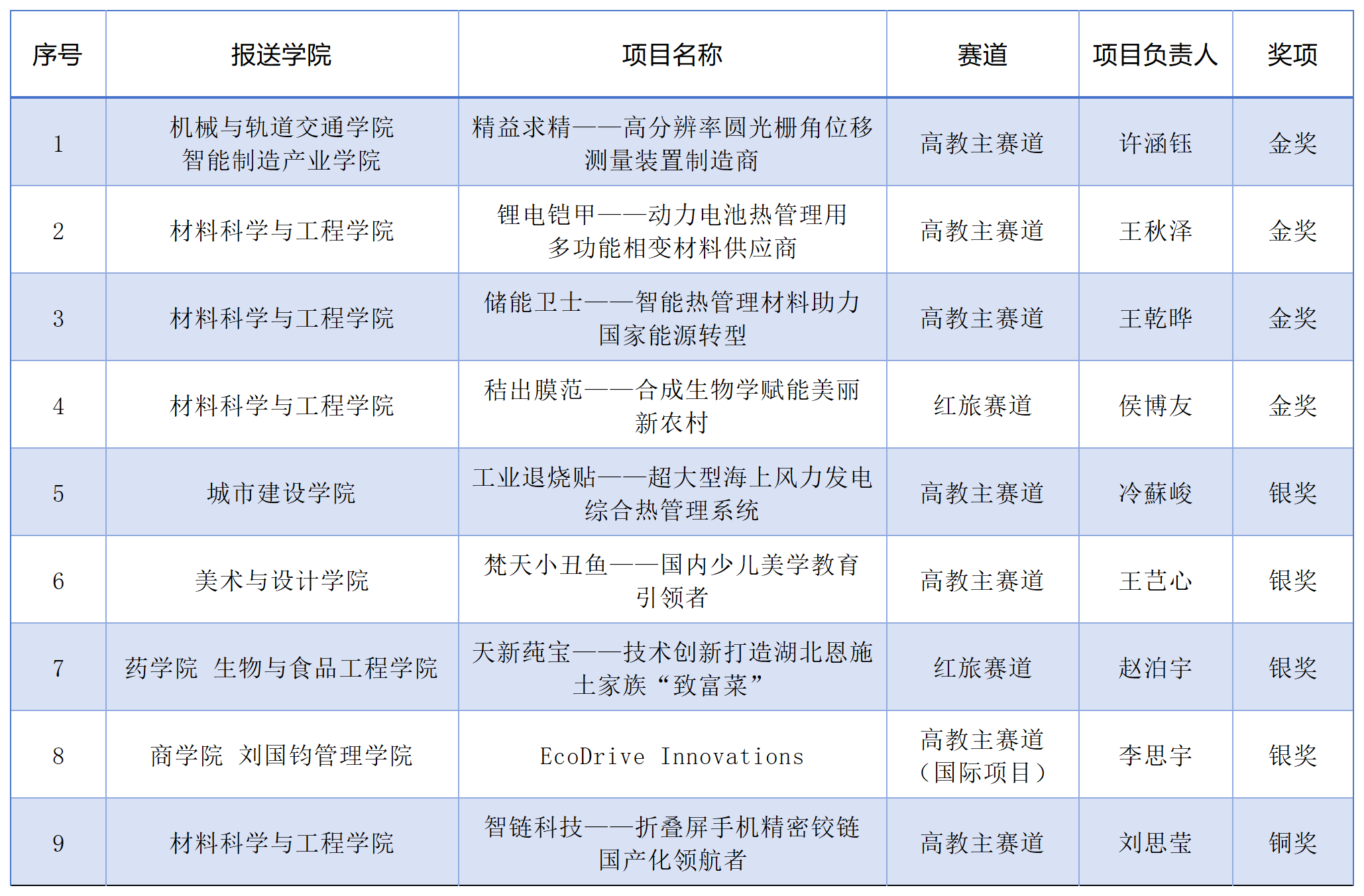 10月12日至15日,中国国际大学生创新大赛(2024)总决赛现场赛及同期活动在上海交通大学闵行校区举行。我校学子经过激烈角逐,最终获得国赛金奖4项、银奖4项、铜奖1项的好成绩,其中高教主赛道金奖3项、红旅赛道金奖1项,首次获得高教主赛道研究生创意组金奖,时隔6年再次获得红旅赛道金奖,国赛金奖总数位列全国第15、全省第4,金奖总数、获奖总数再创历史新高!