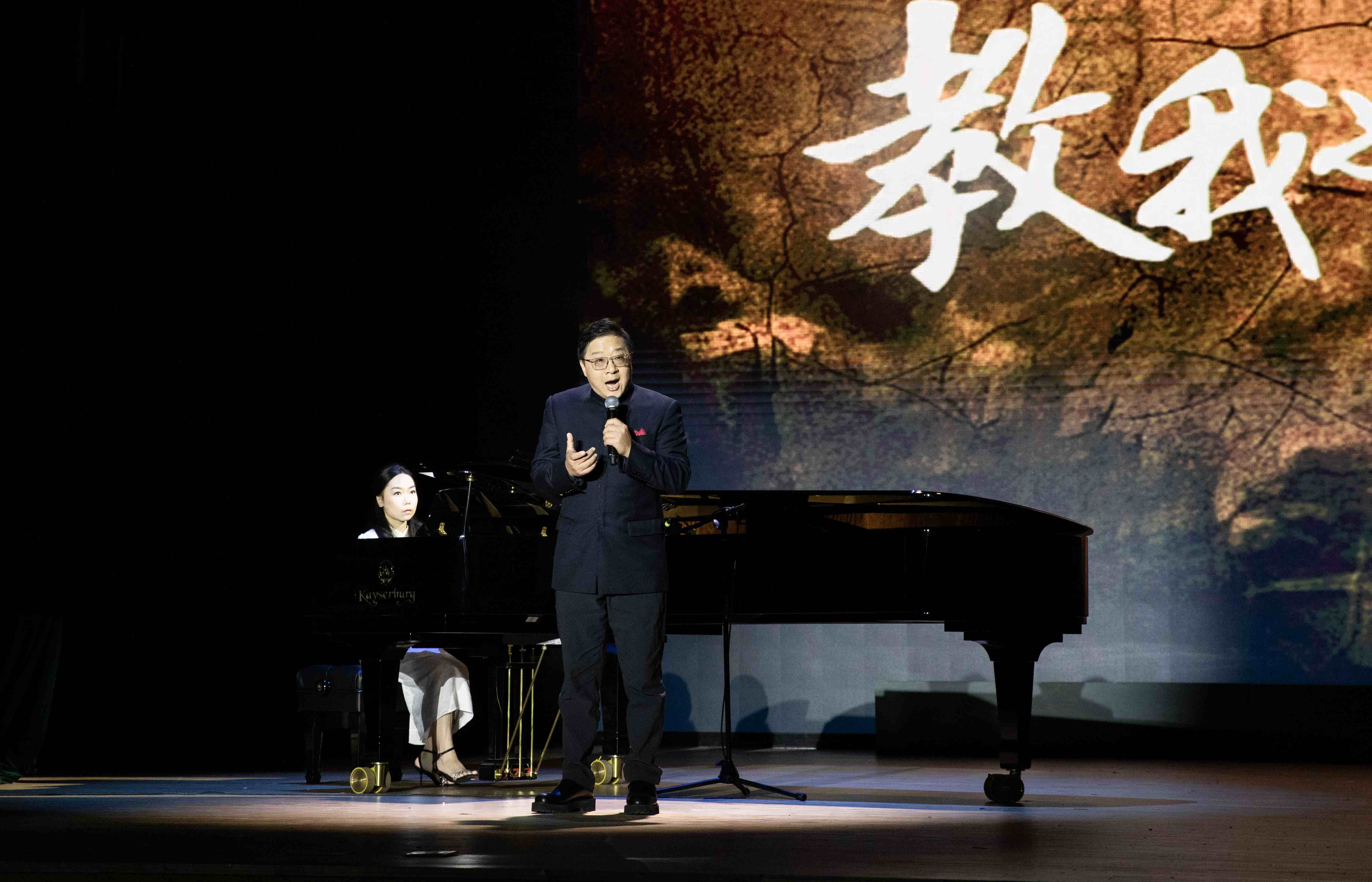 黄家林代表家属讲话,他向促成这次冠名工作的学校领导与各界朋友表示感谢,并回顾了赵元任先生与音乐、语言和戏剧紧密交织的一生。他提到,赵元任音乐与戏剧学院的冠名,预示着学院将成为一个更加注重综合艺术素养、鼓励跨界创新、培养能够驾驭声音与舞台的复合型艺术人才的摇篮。他希望广大艺术学子继承前辈融通中西、连接古今的探索精神,创作出更多有筋骨、有血肉、有温度的文艺作品。