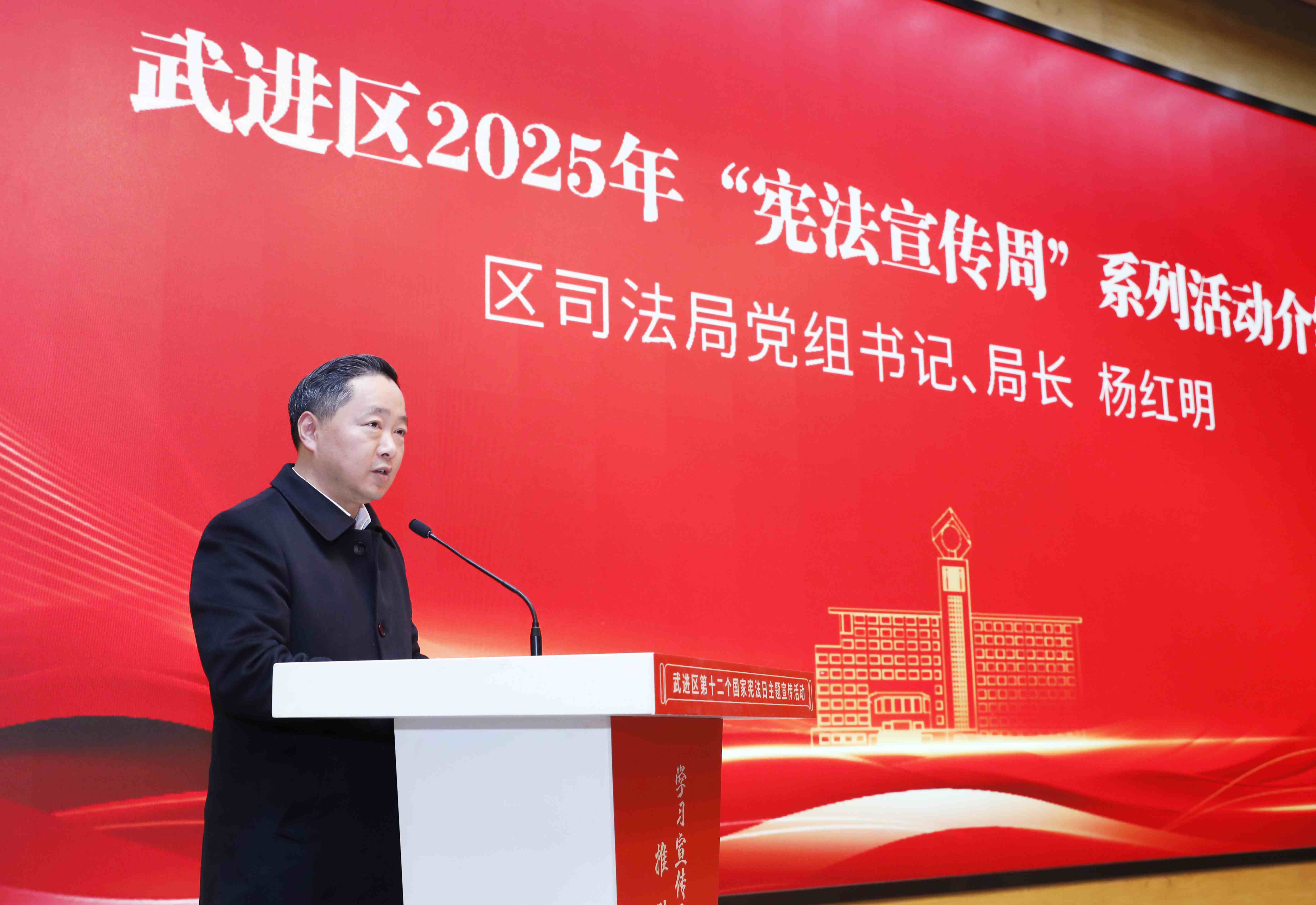 杨红明系统介绍了武进区2025年“宪法宣传周”系列活动的整体安排。他表示,本次宣传周以“学习宣传贯彻习近平法治思想,推动宪法深入人心”为主题,活动时间从12月1日至7日,各地各部门可结合实际适当延展。宣传内容涵盖习近平法治思想、党的二十届四中全会精神、中央全面依法治国工作会议精神、习近平法治思想提出来的全民依法治国取得的历史性的成就、宪法的规定原则和精神、法治宣传教育、法治武进建设取得的新进展新成就、全民普法四十年以来宪法学习宣传的成效和经验等板块。重点部署开展宪法进乡村、进社区、进学校、进机关、进企业、进网络等活动,推动宪法宣传融入日常、落在基层,形成全方位、多层次的宣传矩阵。