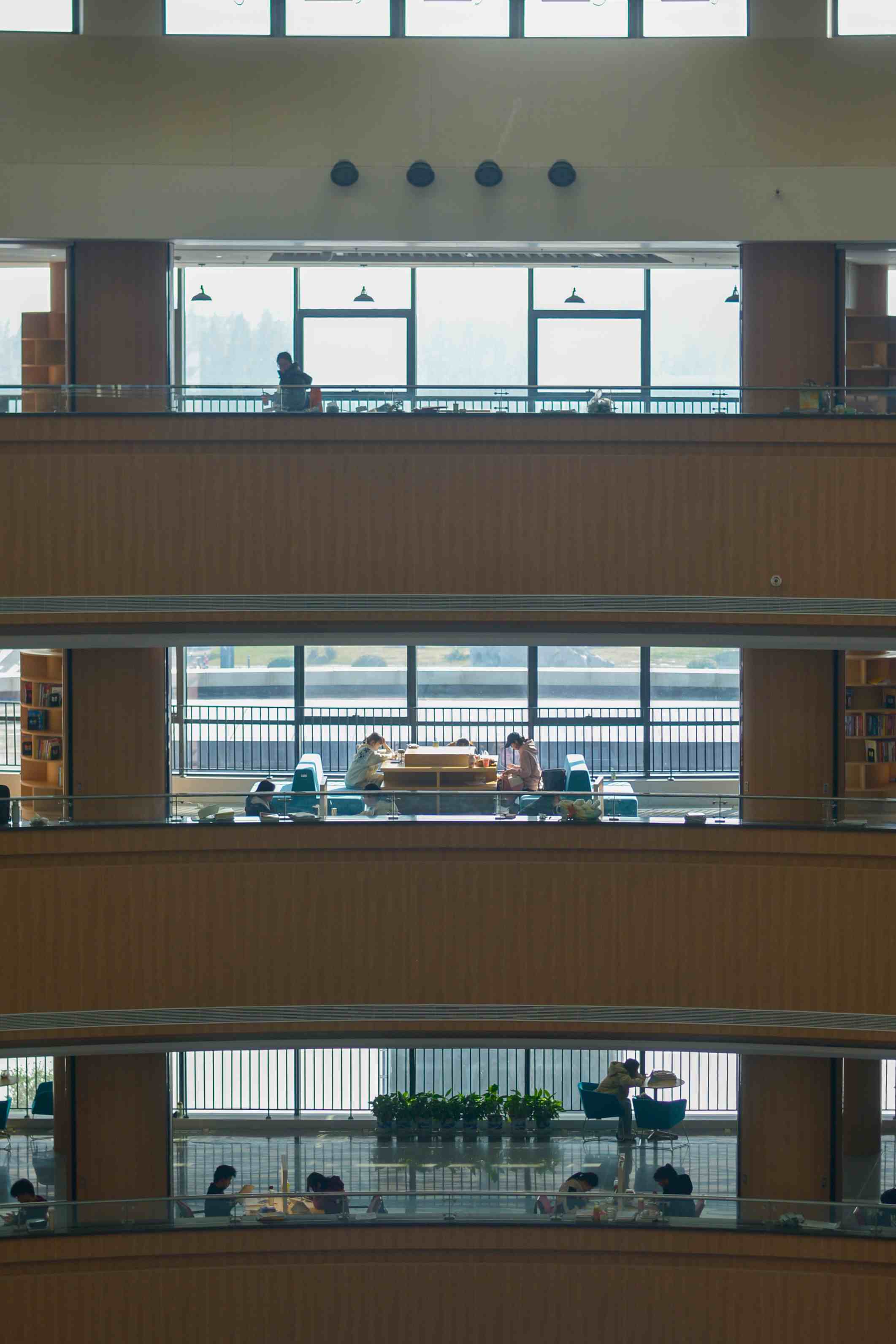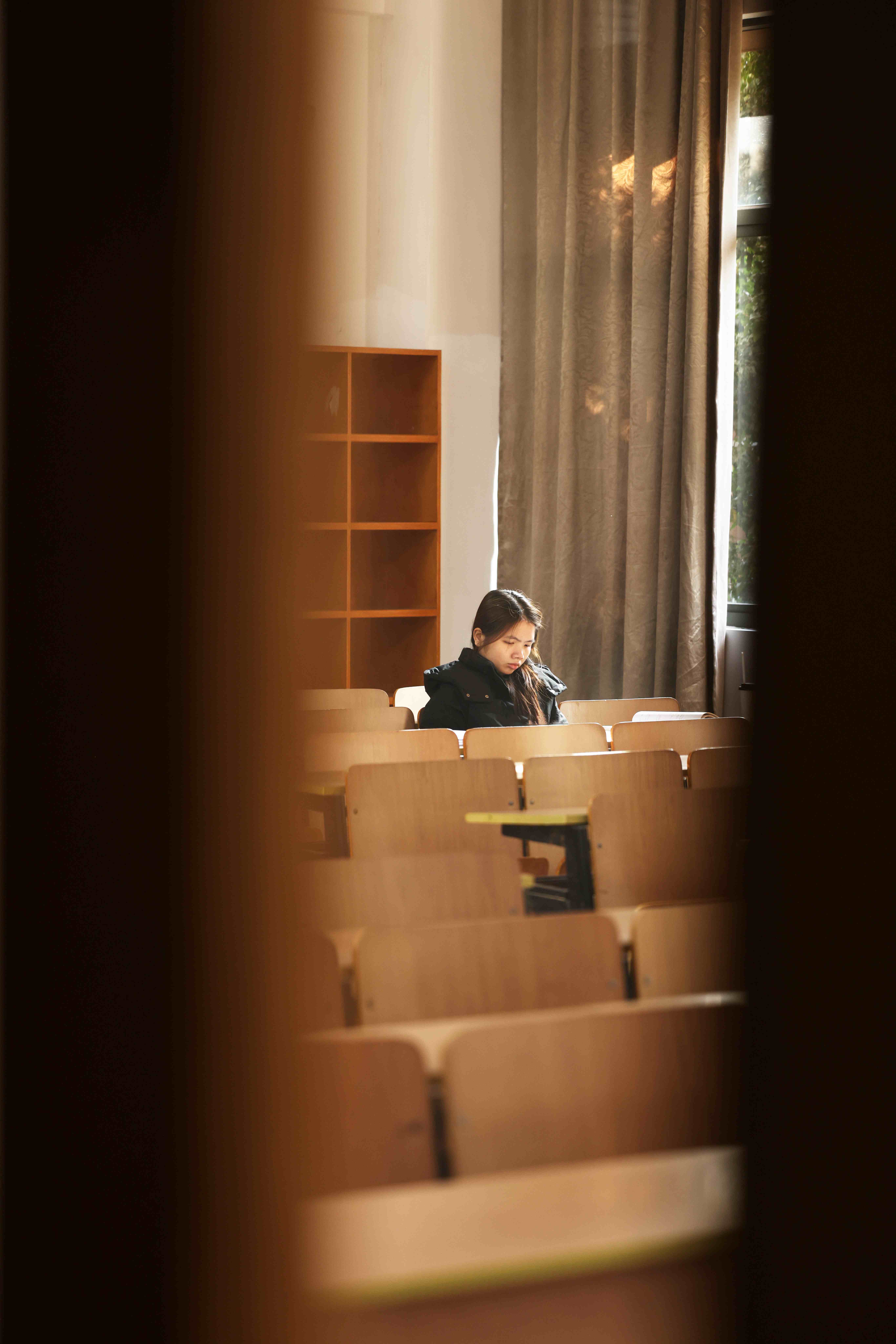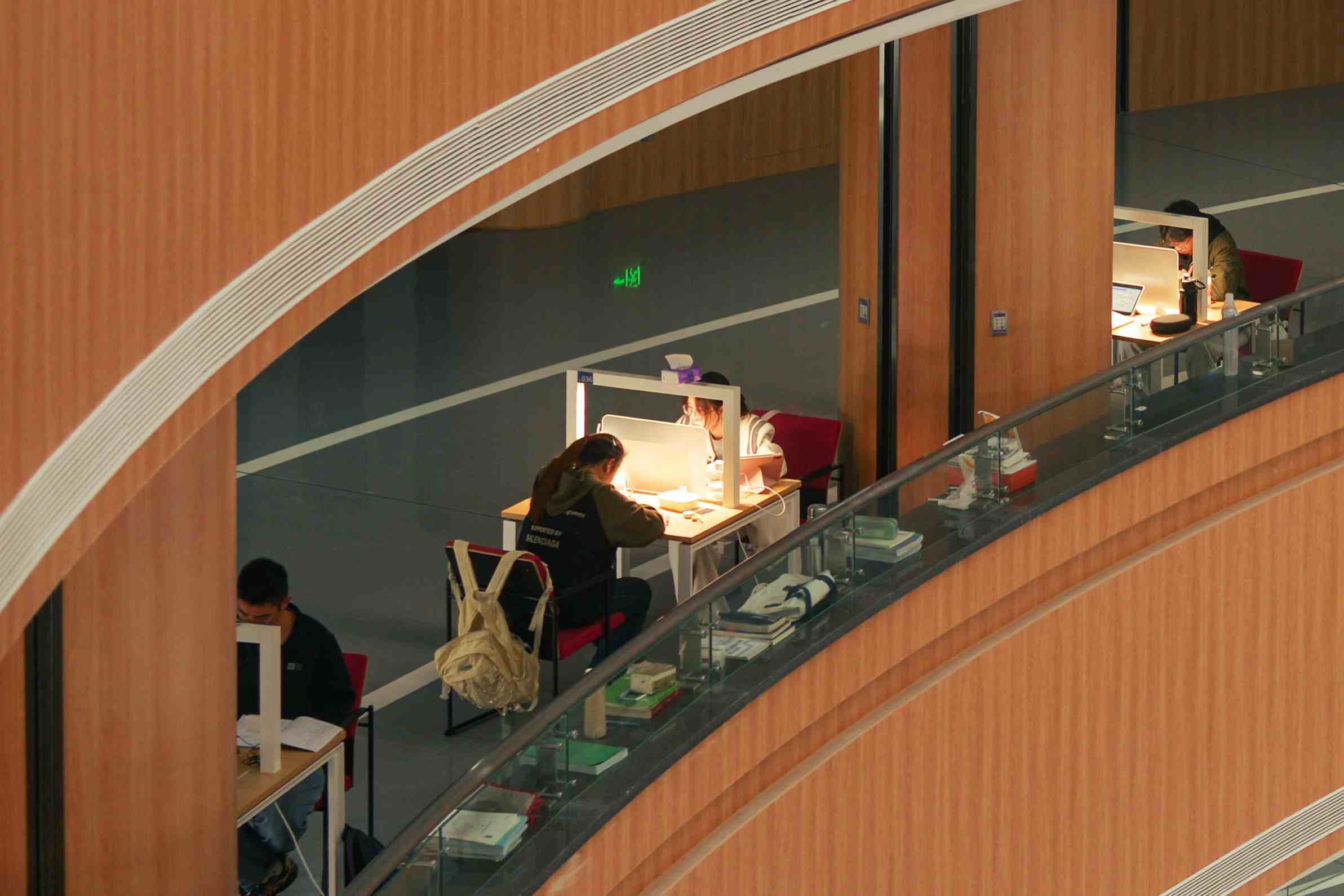 图书馆长廊专注侧影