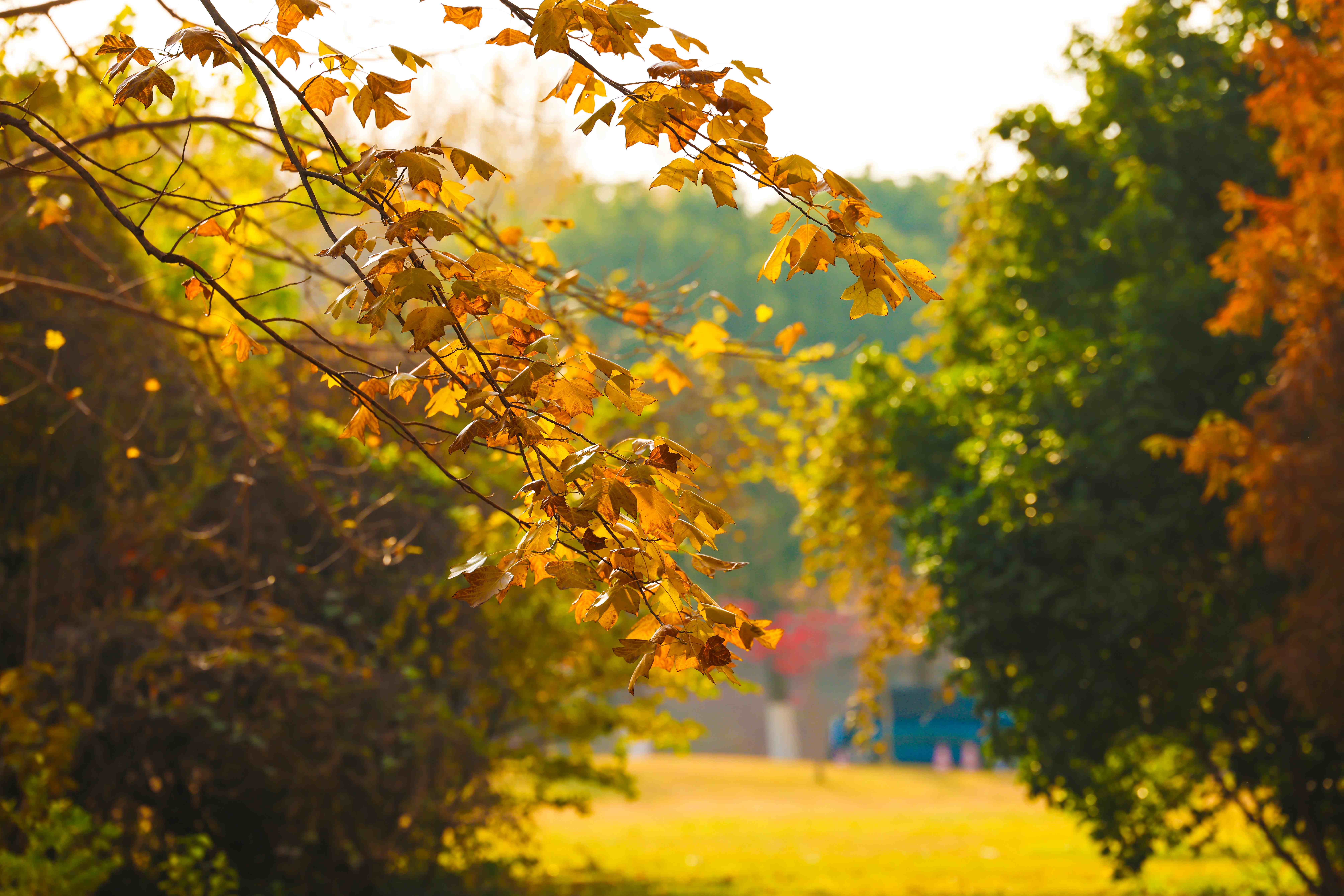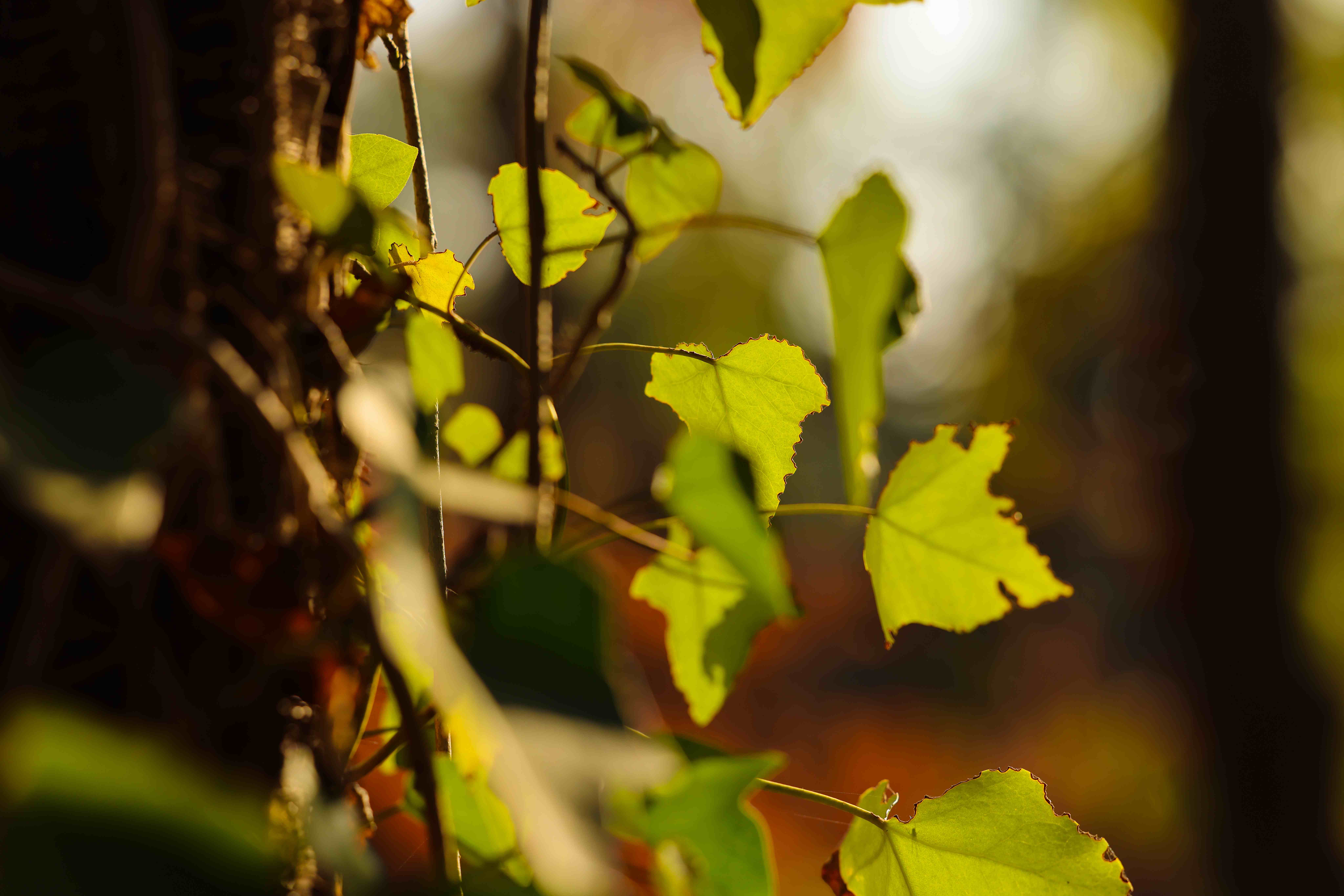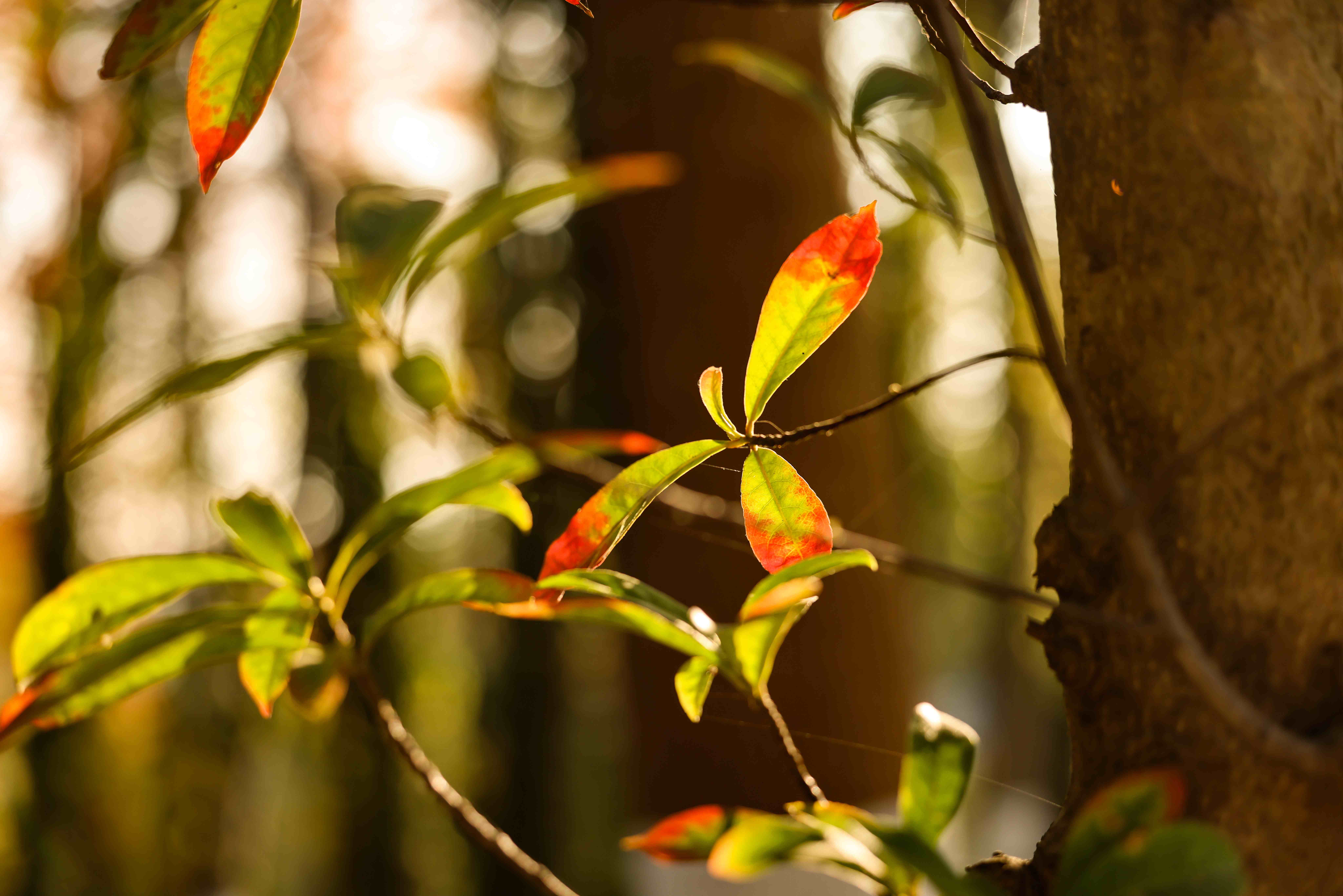 阳光穿过树叶间隙