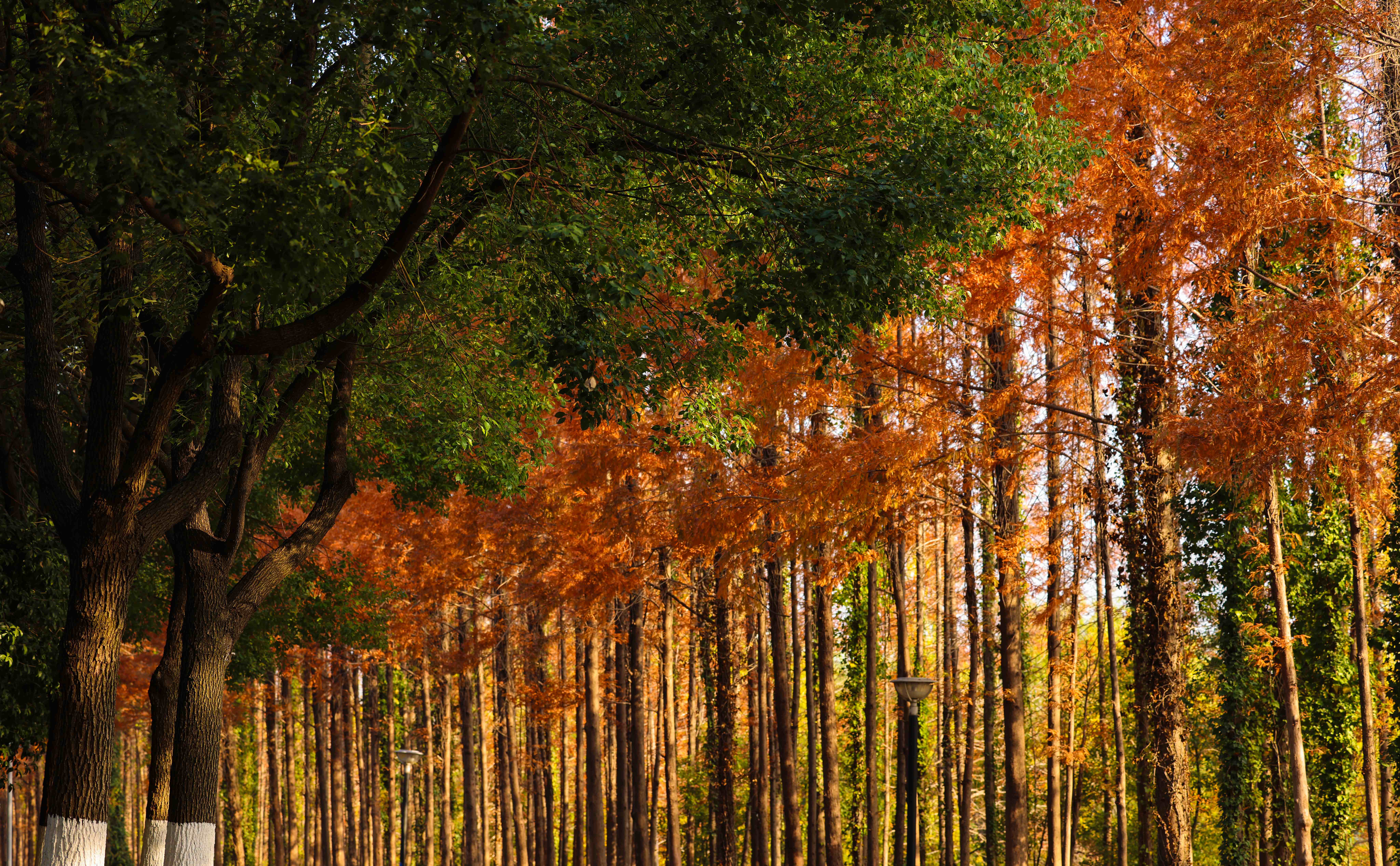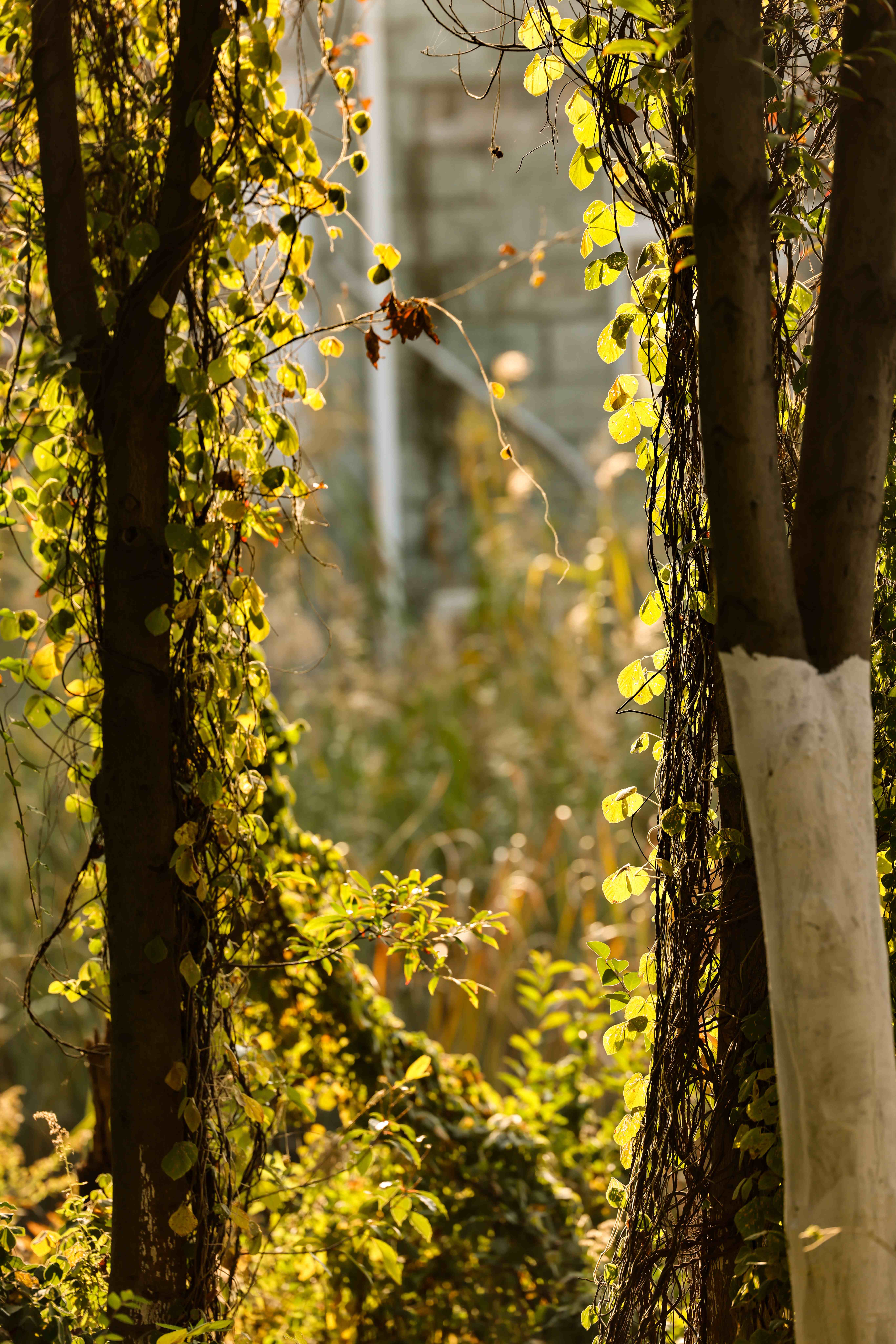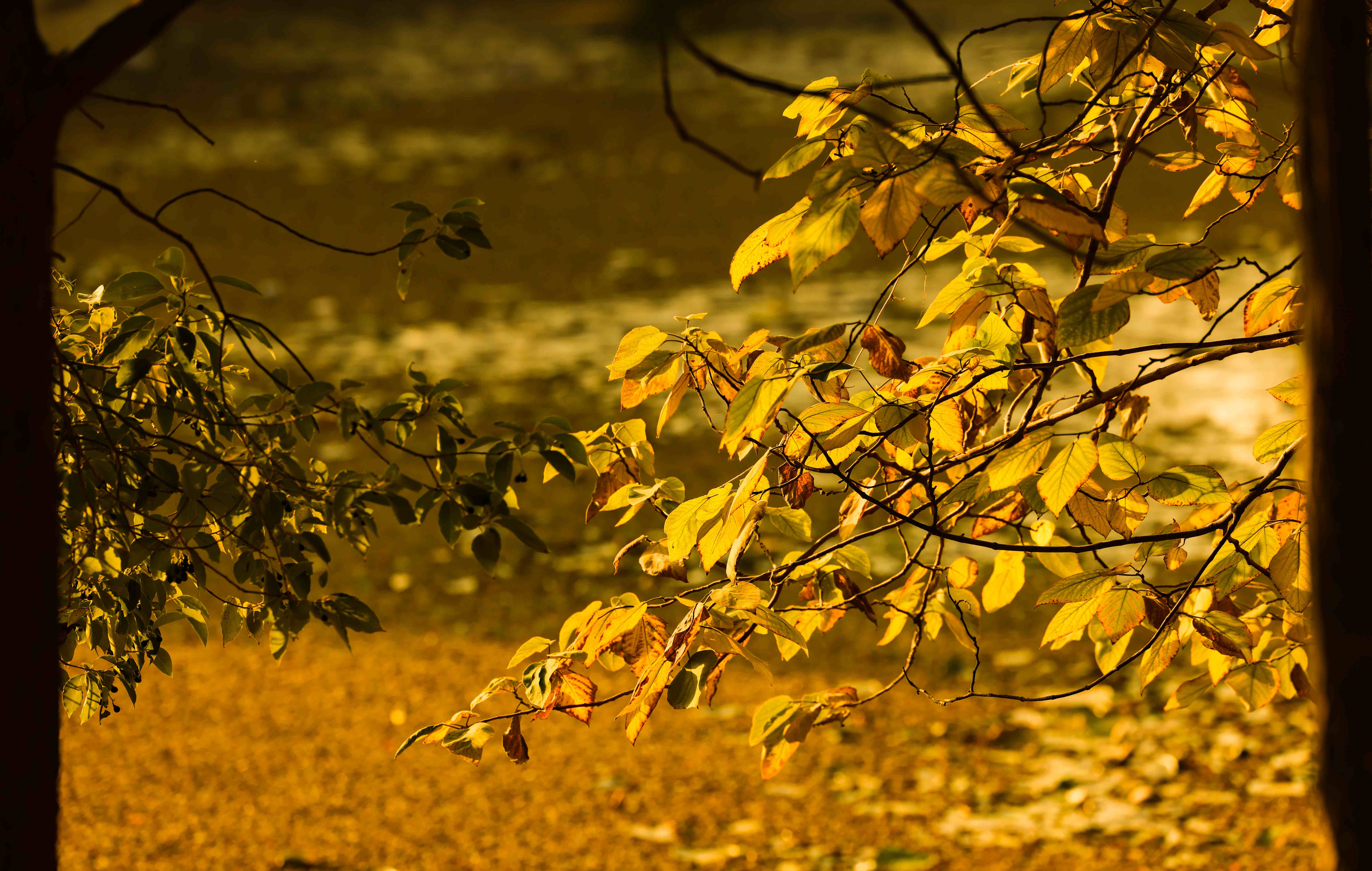 阳光穿过树叶间隙