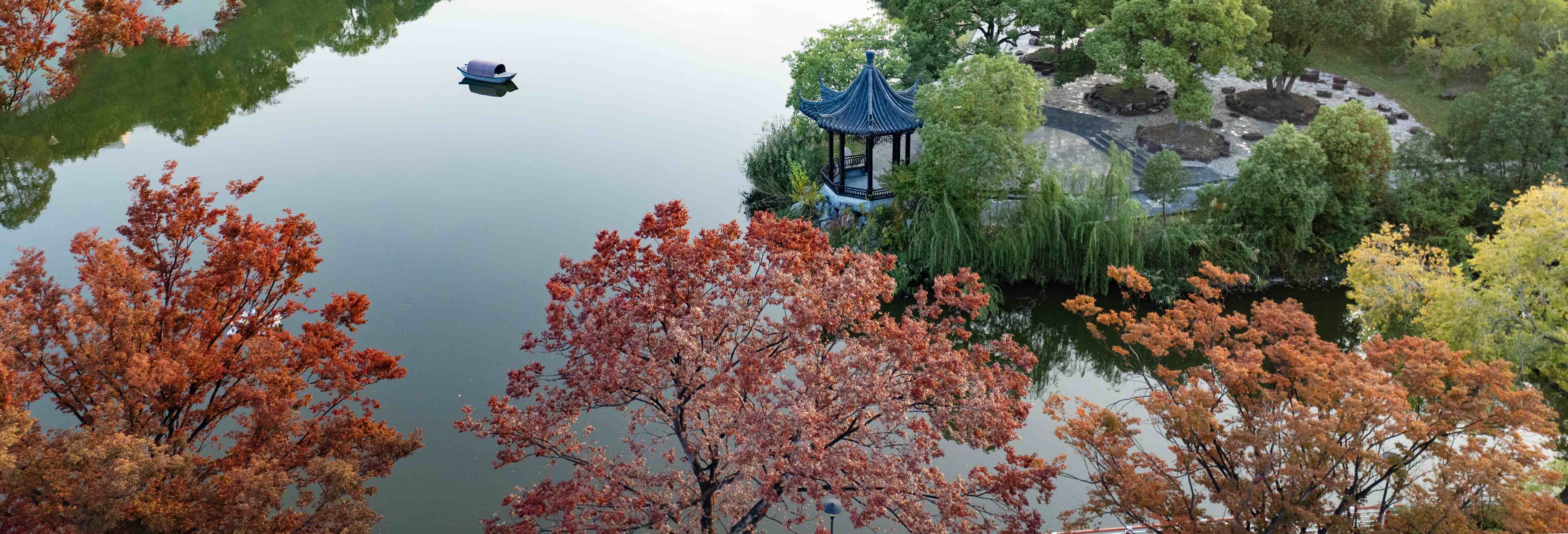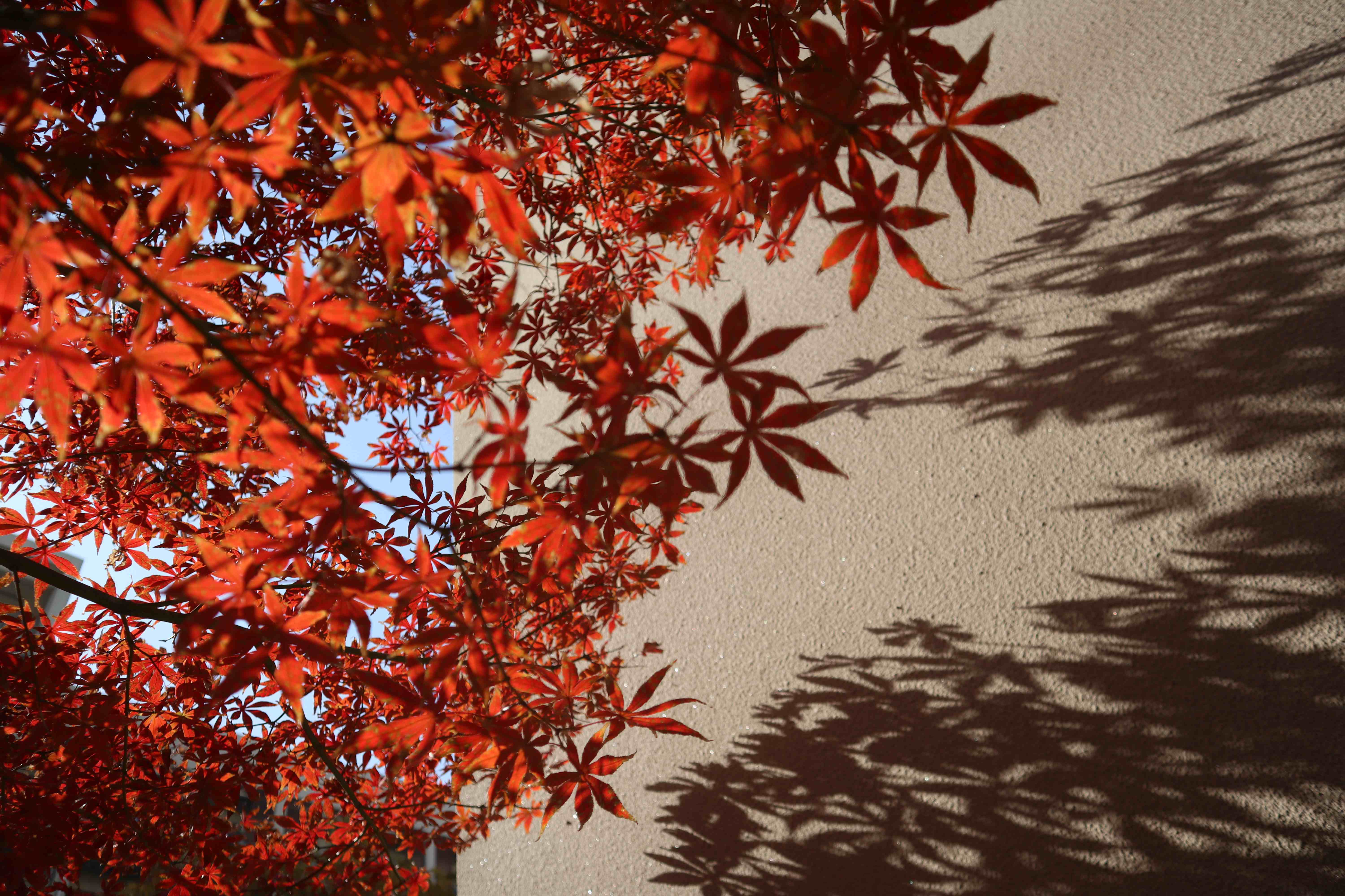 伸手接住一片飘落的红叶