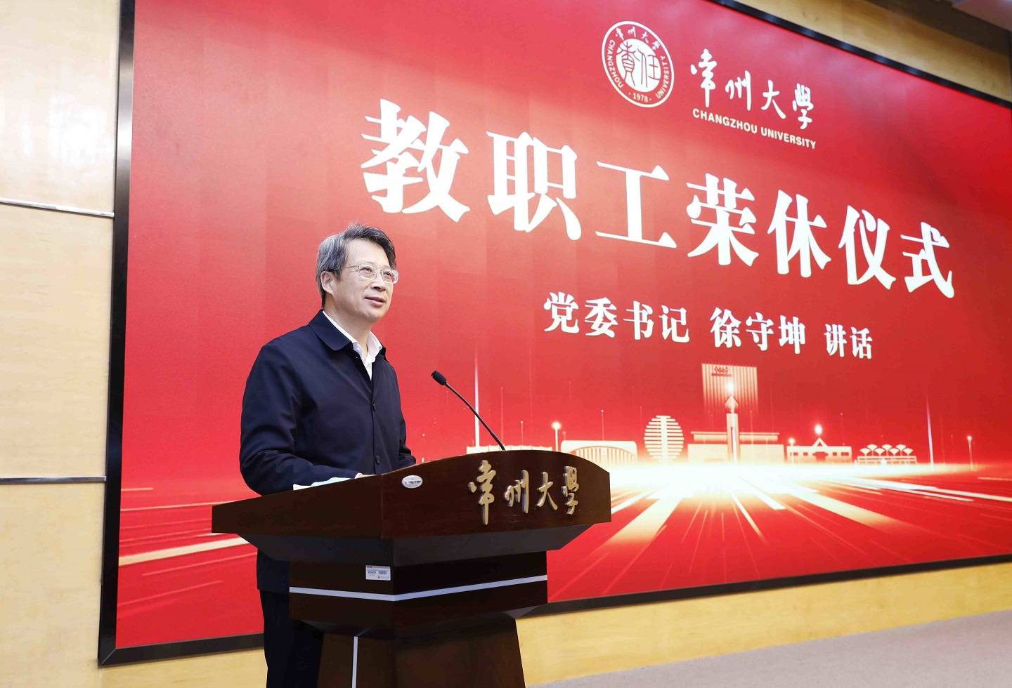 徐守坤代表全校教职员工向荣休教职工致以最崇高的敬意和最真挚的祝福。他感谢各位荣休教师以数十载的仁爱之心躬耕教坛,以无私奉献精神投身学校建设,用毕生心血铸就了常州大学的今日根基。他表示,学校党委、行政及相关部门将持续从政治、感情、工作、生活各方面全力做好服务保障,并祝愿老同志乐享生活、颐养天年,保重身体、健康长寿,常回家看看。他恳请大家继续关心支持学校发展,助力学校建成特色鲜明的高水平地方领军型大学。他寄语青年教师,要传承“躬耕教坛”的育人初心,传承“敢闯敢试”的创新精神,传承“团结奋斗”的优良作风,与老同志们多交流、多学习,在传承中创新、在协作中进步,共同书写常大发展新篇章。