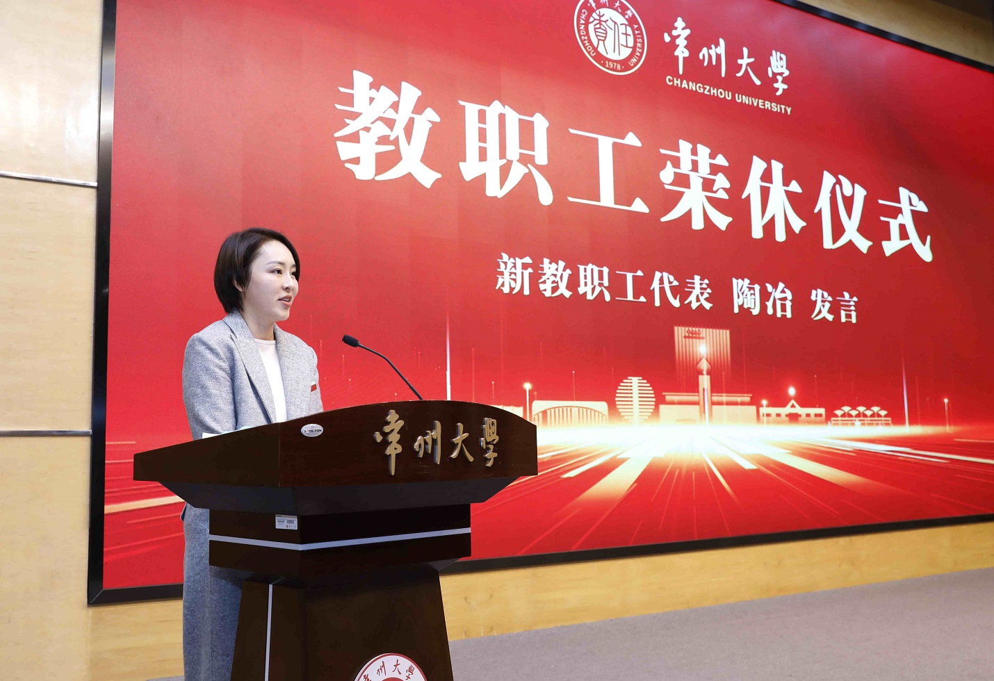 青年教师代表陶冶向荣休前辈致以崇高敬意。她感谢前辈们以深厚的学识、无私的奉献和温润的师爱,铸就了常大的精神底蕴,为后辈树立了光辉榜样。她承诺,新一代教师必将传承这份精神,勇担使命,接续奋斗,为学校发展贡献青春力量。
